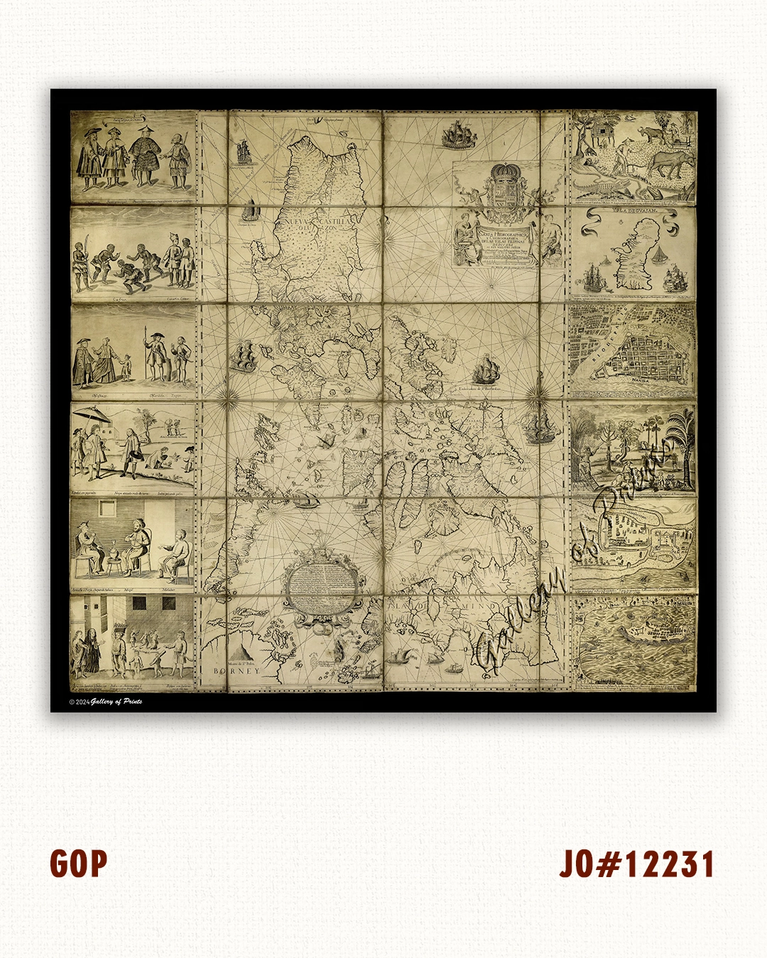 Reproduction map of the Philippine archipelago drawn by the Jesuit Father Pedro Murillo Velarde (1696–1753) and published in Manila in 1734. This is the first and most important scientific map of the Philippines. It is called the magnus opus or Queen of all maps of the Philippines.